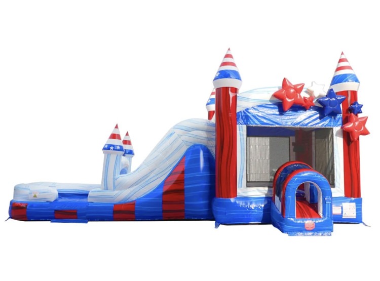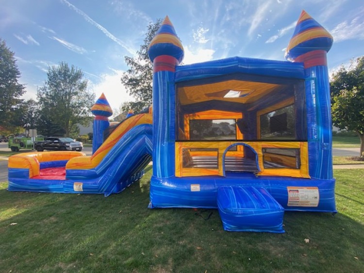 Inflatable bounce house combos are great for getting energy out. A few of these combo bouncers come with a basketball hoop or slide that is built in with a bounce space! We specialize in bounce house rentals and would be delighted to help you with your party needs.