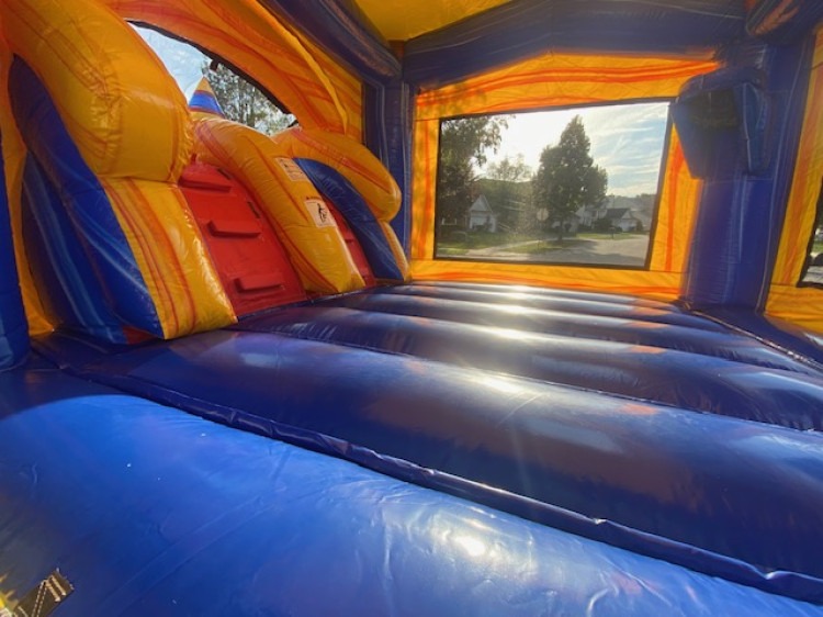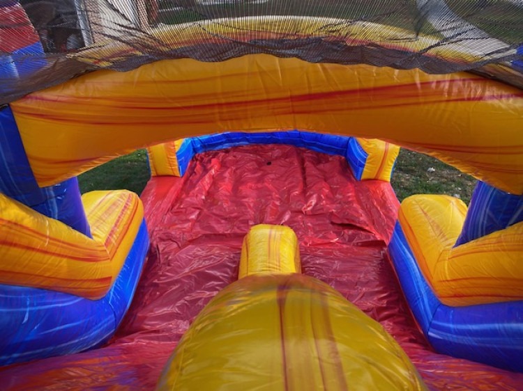 - OCCUPANCY: A maximum of 5-6 kids of equal size at one time for bounce houses, and 1 person at a time for slides is what most inflatable manufacturers recommend.